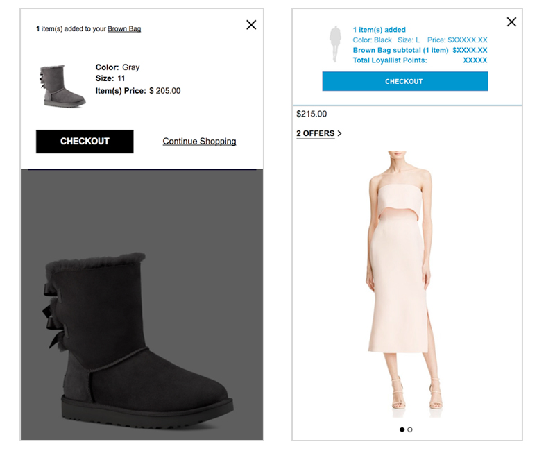 A/B testing of the mobile add to bag. The customer problem: the mobile bag was too complicated and the information was not scanable making it hard for the customer to understand what they added to their bag. We ran an A/B test on the bag to prove what was the best solution for the customer.
